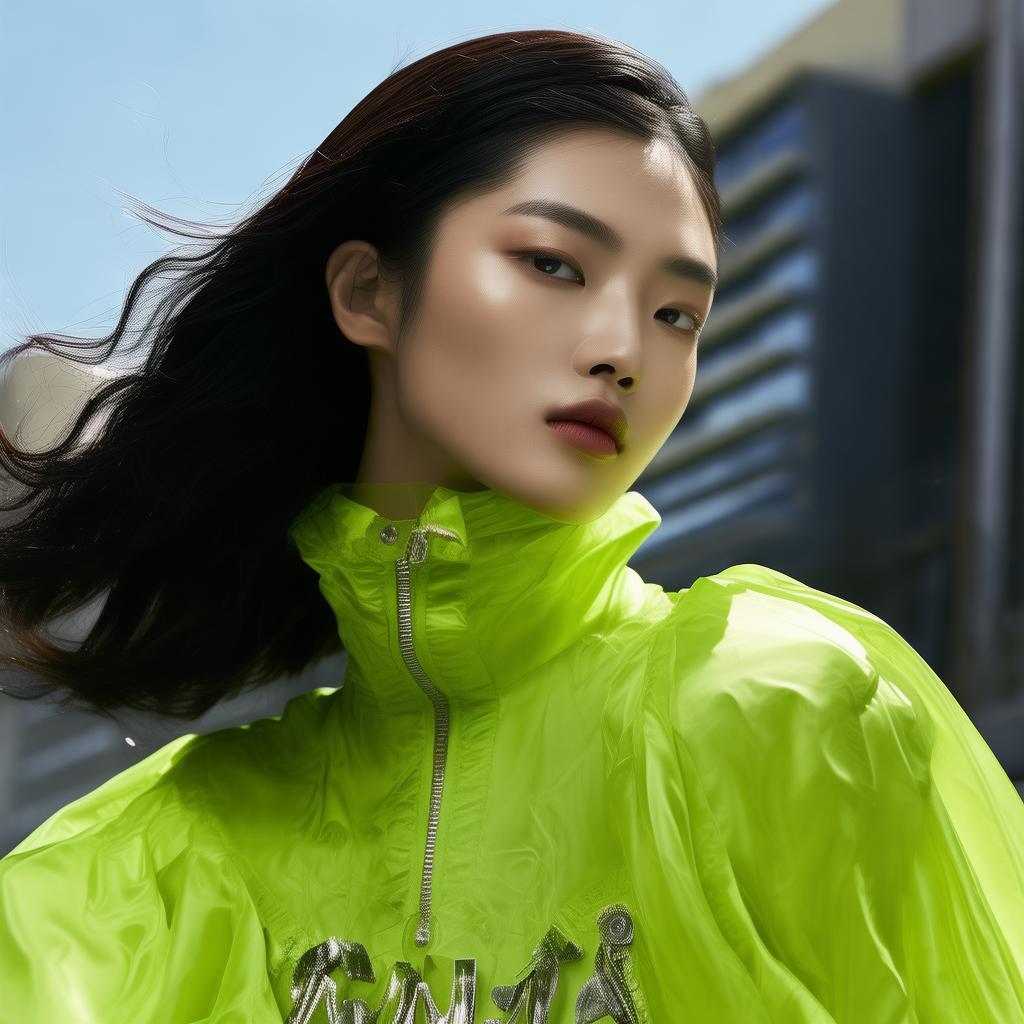 - 色彩实验:大胆尝试荧光绿与深灰的撞色搭配,凸显立体五官